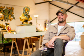 De muur is het atelier van Ditte Brouwers. Het kunstwerk is een schilderij met de titel “Toegedekte grond”....